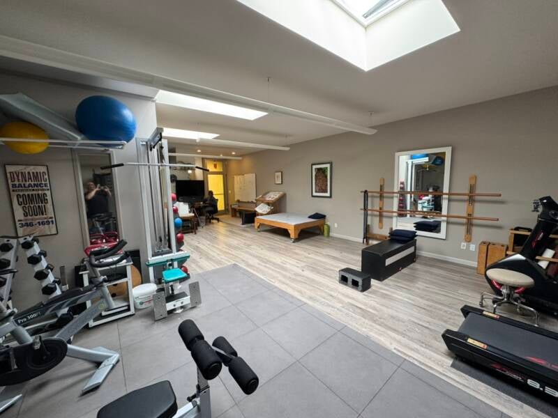 - Shared Resources: Well-appointed bathroom with shower, kitchenette, lockers, Hydrocollator heat therapy, ice, office area and storage, skylights.